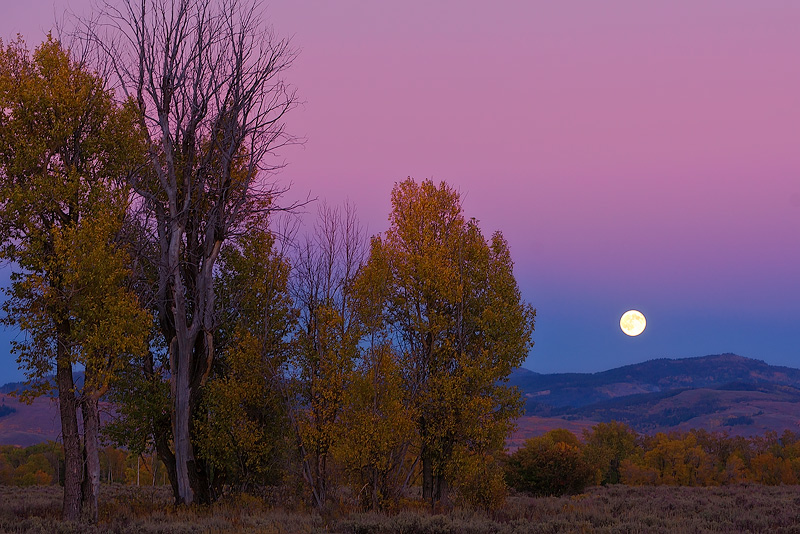Beautiful pastel colors as the moon rises in Grand Teton National Park