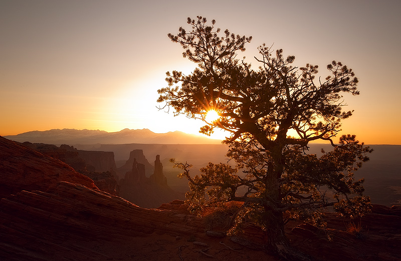 A sun star shining through the tree In the first light